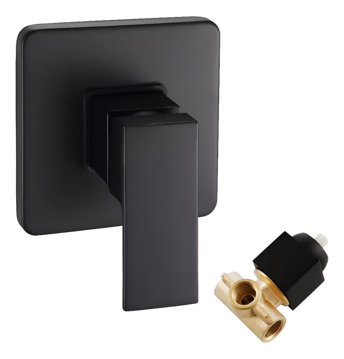 Base Misturador Monocomando de 1/2' Chuveiro e Banheira com Acabamento Quadrado Preto Fosco Black Matte