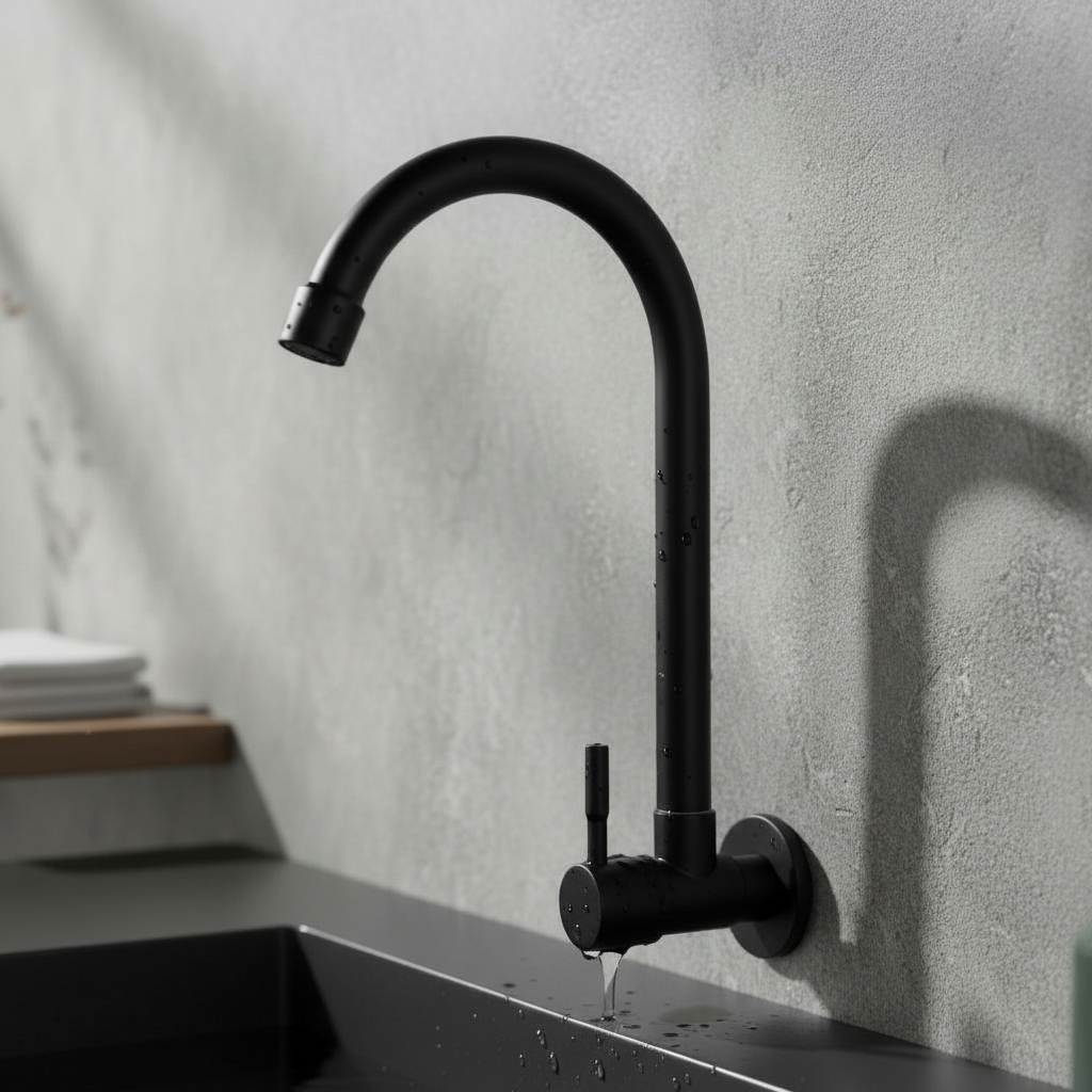 Torneira Cozinha Parede Bica Alta Em Aço Inox Preto Fosco1/4 Volta