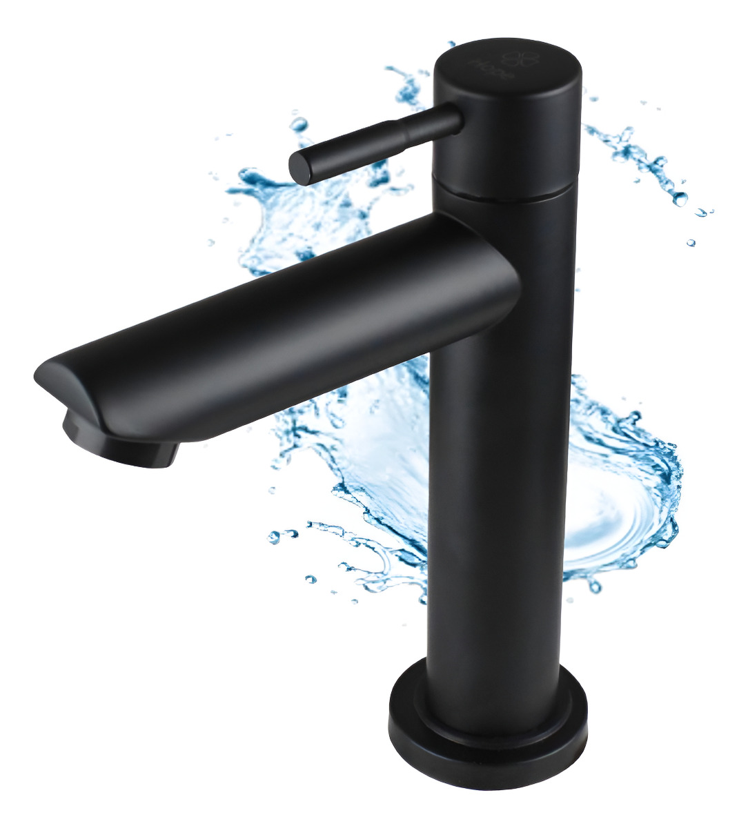 Torneira para Banheiro Redonda Maxforte, alavanca com abertura de 1/4 de volta e arejador na bica para uma maior economia de água, fabricada em metal com acabamento preto fosco.